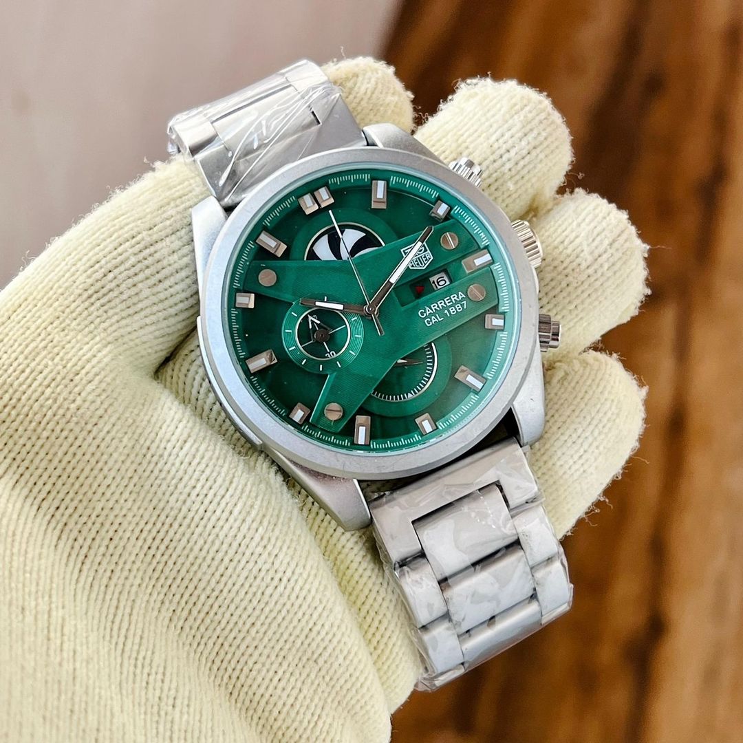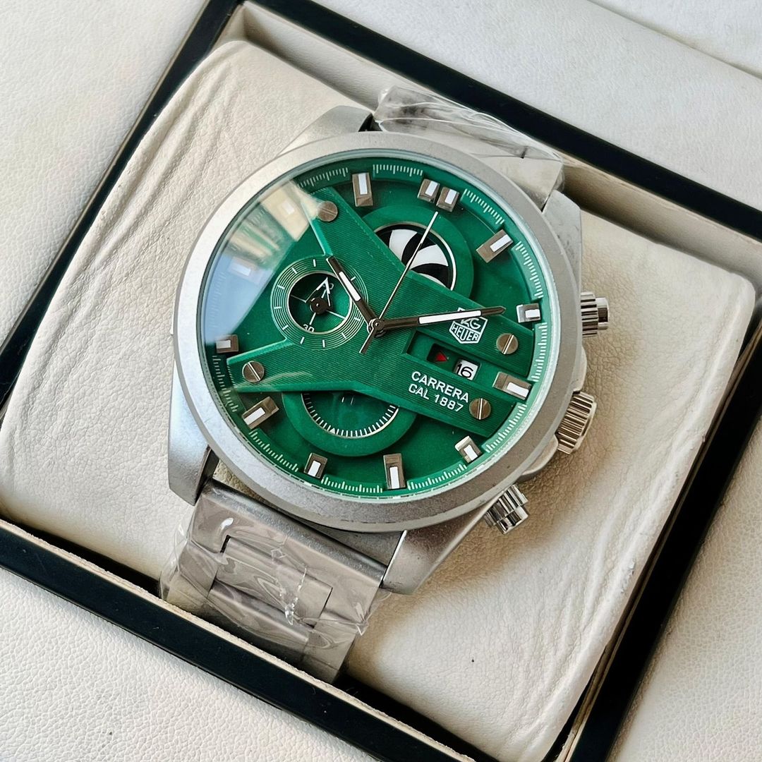 Description: The TAG Heuer CR7 Silver-Green Watch is a tribute to excellence, inspired by the legendary Cristiano Ronaldo. Crafted with a refined silver stainless steel case and vibrant green details, this timepiece perfectly captures a sporty yet sophisticated look. The high-performance quartz movement ensures accuracy, while the elegant design adds a luxurious touch to any outfit. Whether for casual wear or formal events, this watch offers a unique combination of athletic inspiration and timeless elegance, making it a must-have for any TAG Heuer enthusiast.